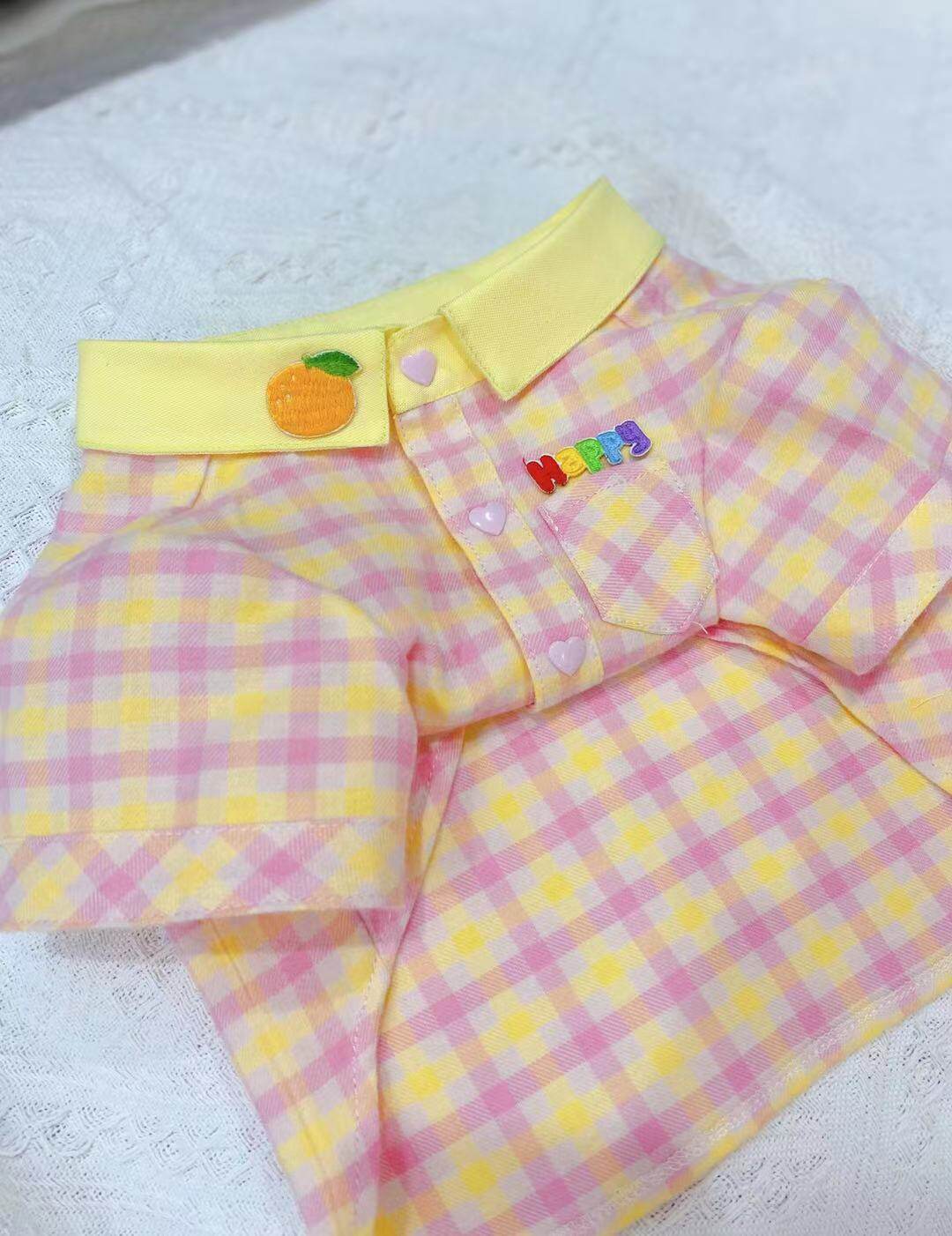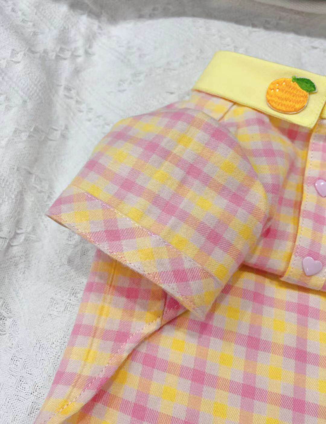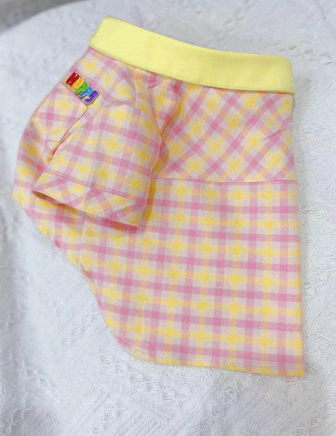 Original handmade custom pet clothes dog cat couple dress spring and summer thin pink plaid shirt Teddy