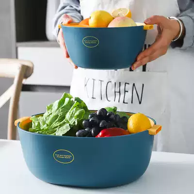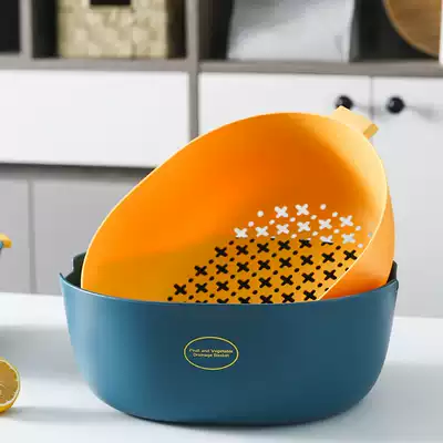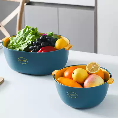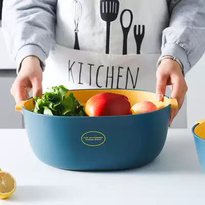 Double-layer drain basket net red fruit plate Kitchen multi-function vegetable washing basin artifact home living room storage plastic basket