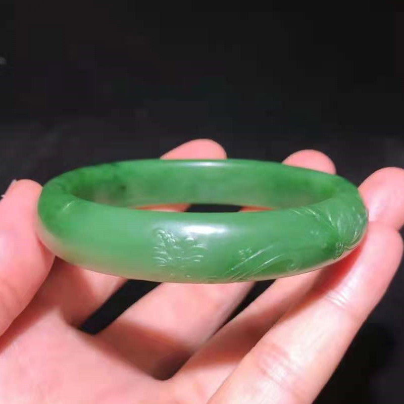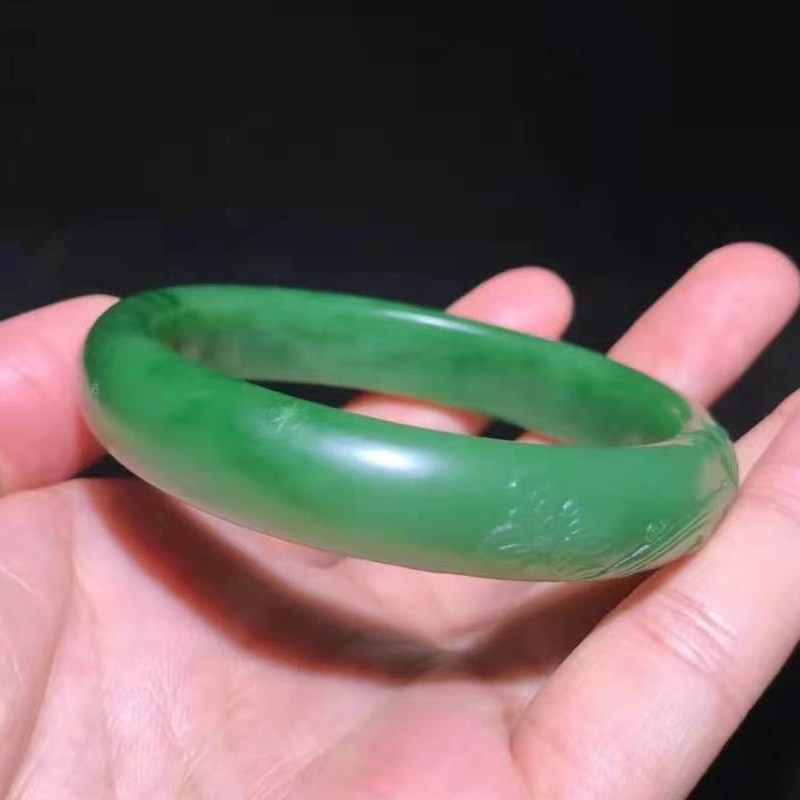 Hetian jade professional live broadcast old material jasper hand-carved lotus bracelet inner diameter 58 5 - Taobao