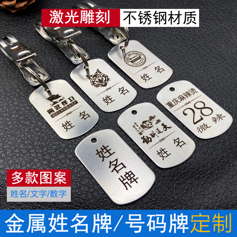 Stainless steel metal name plate with clip clothes drying clip listing Malatang number plate Key number plate customization