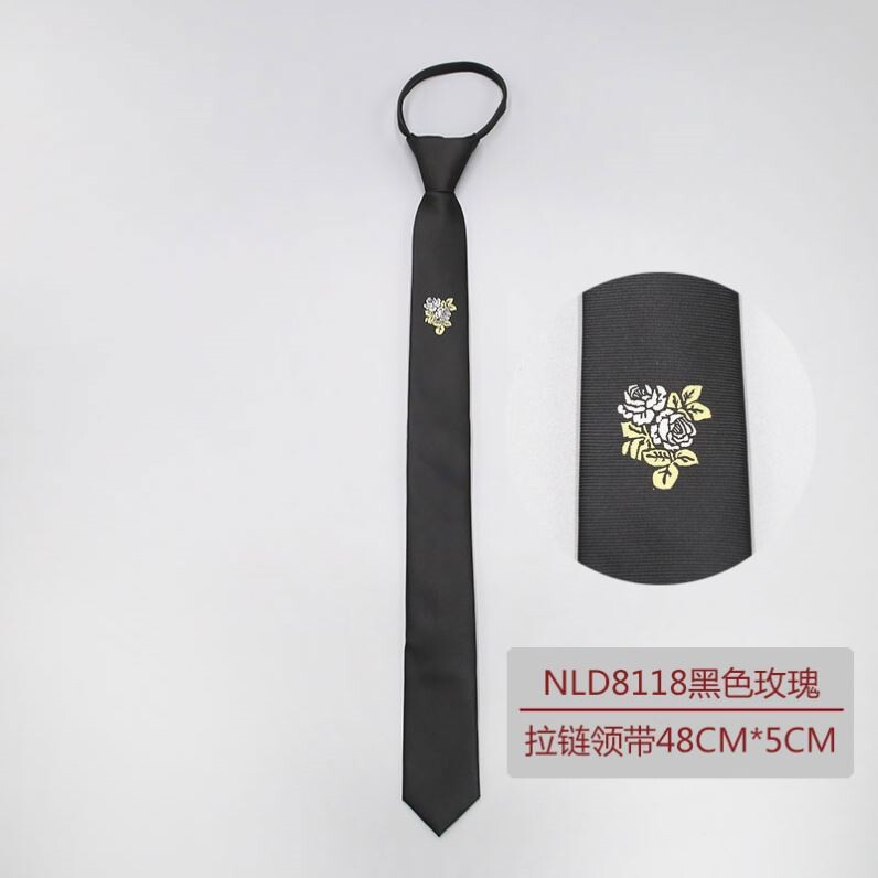 5CM Korean narrow tie men's British business black embroidered zipper lazy easy to pull tide casual gift box