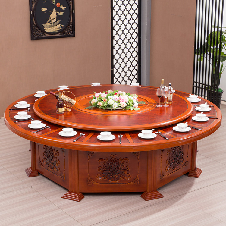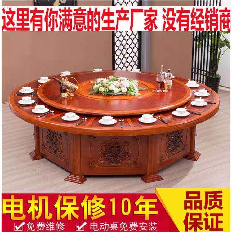Hotel dining table large round table electric solid wood with turntable large dining table commercial 15 people banquet box electric large round table