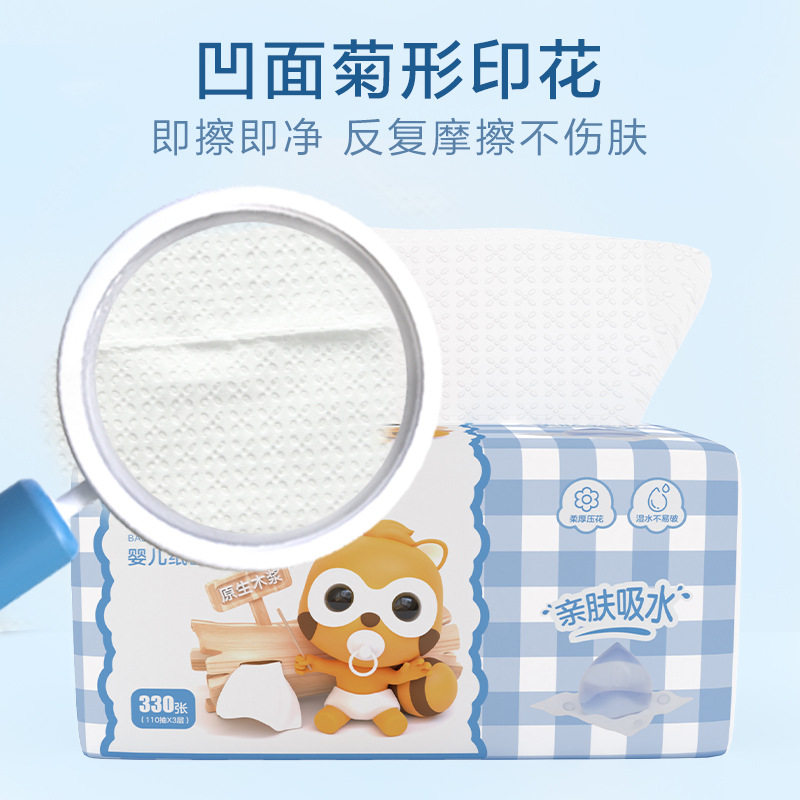 Small raccoon children's large-capacity facial tissue baby hand and mouth soft paper towel soft pumping paper 3 layers thickened whole box 18 packs
