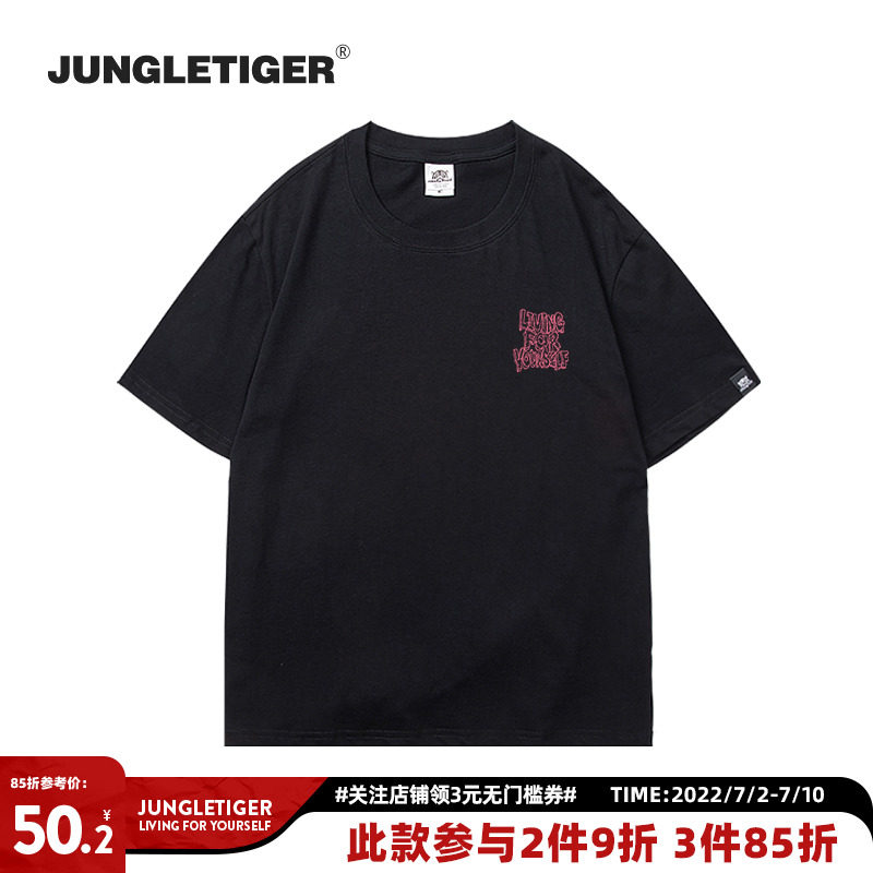 Summer Jungle Tiger Tide Card Small Crowd Design Feeling American T-Shirt Trend 100 Hitch Loose Pure Cotton Short Sleeve T-Shirt Man