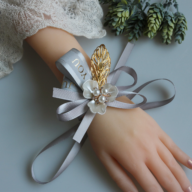 Wedding original Chinese style simple beautiful bride wrist flower Bridesmaid sister group hand tied flower Wedding hand flower bracelet