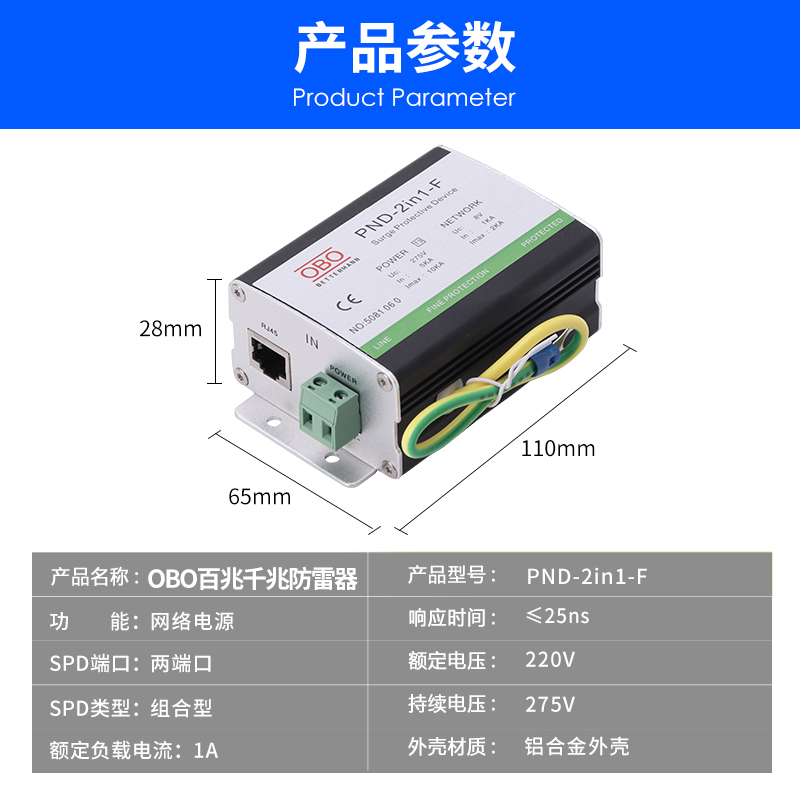 OBO 100 Gigabit network power supply two-in-one lightning protection RJ45 24V AC220V monitoring power supply lightning arrester