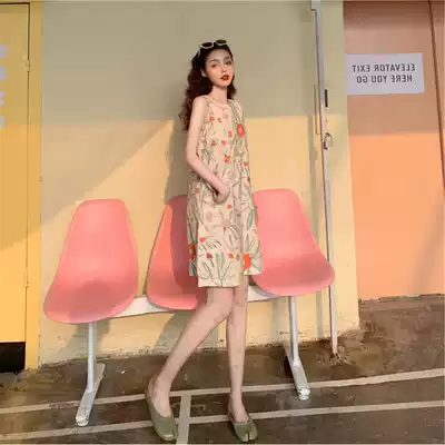 Sandro Moscoloni seaside resort beach dress women 2021 summer new off-shoulder harness floral dress