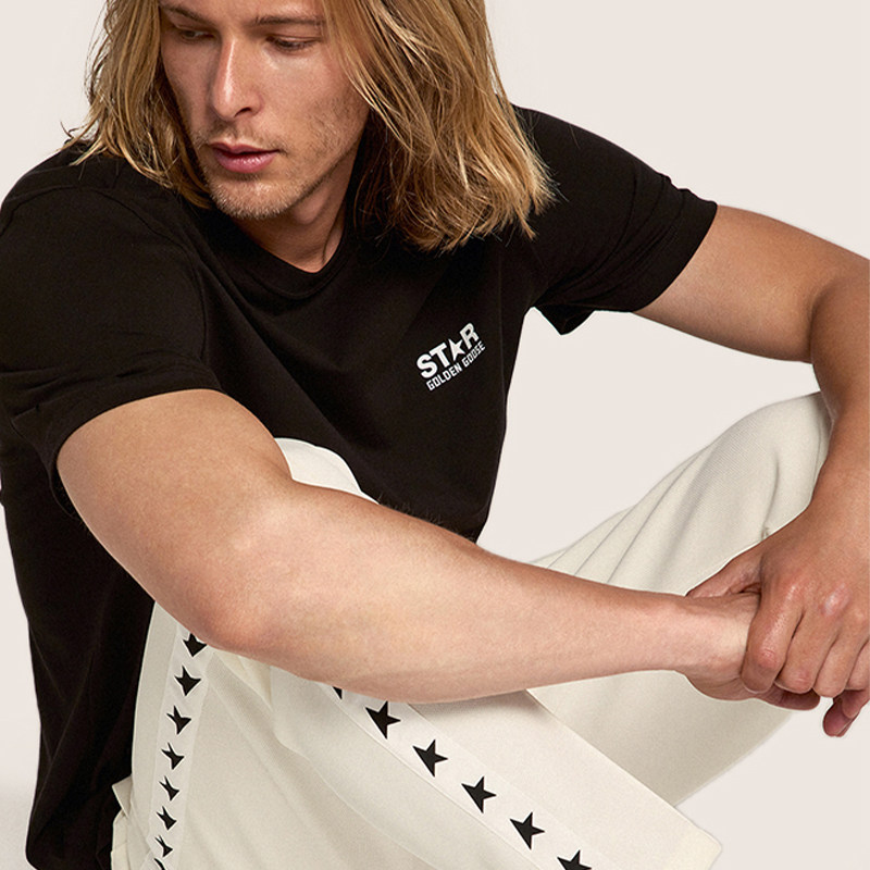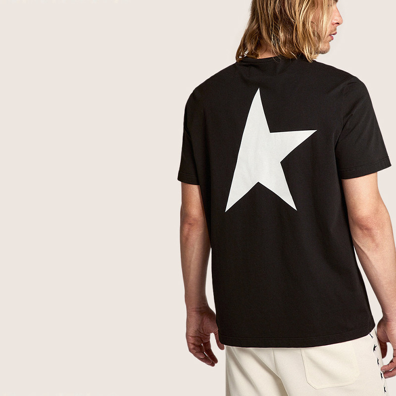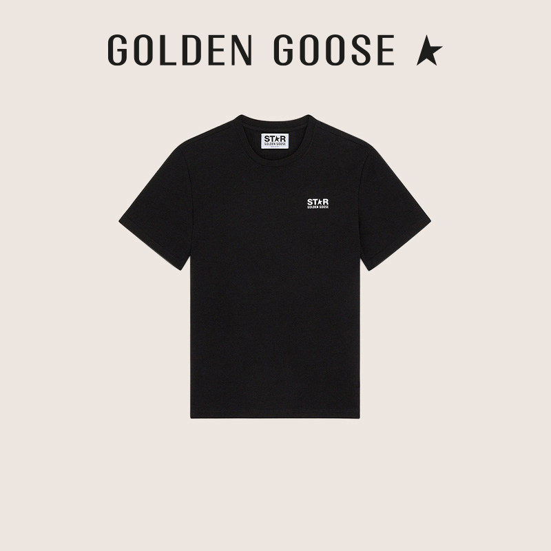 Golden Goose Men's Star Collection Letter Black Cotton Crew Neck Short Sleeve T-Shirt