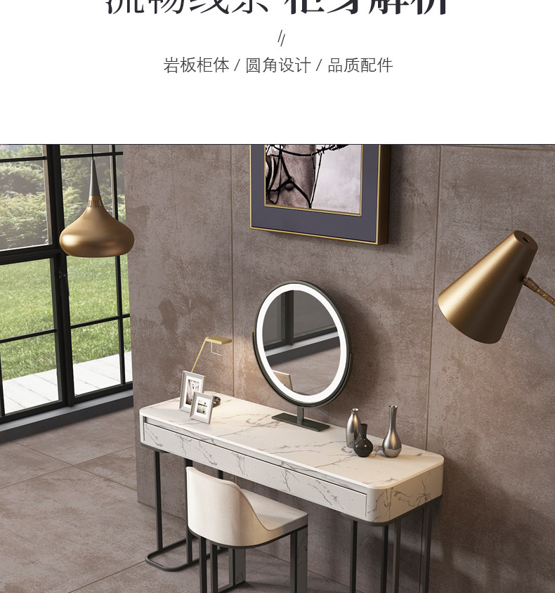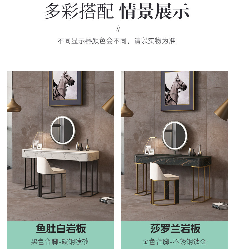 High-grade makeup table Light luxury rock plate net red bedroom Italian ins wind Marble Photo studio makeup table LED with lights