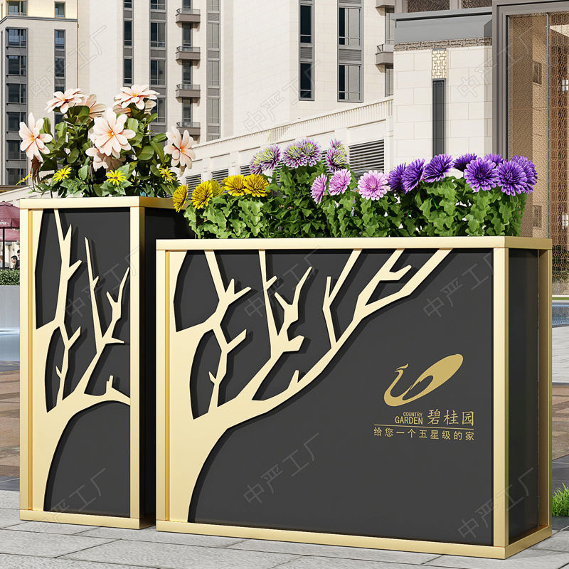 Outdoor Iron Art Flower Case Partition Combined Flower Beds Fence Planting Box Flower Groove Outside Pendulum Square Sample House Display Center Outdoor customization