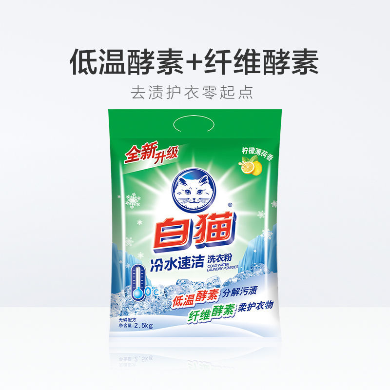 White cat phosphorus-free washing powder 5 kg cold water speed cleaning machine washing bag with double - acting enzyme cleaning to stain