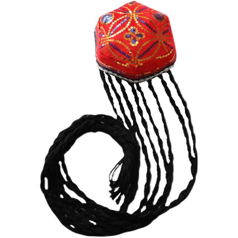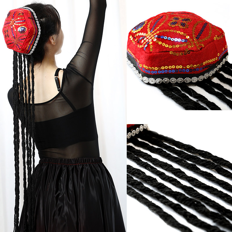 Xinjiang dance hat Wee family small flower hat ethnic minority dance headwear hat hexagonal hat with braid hat-Taobao