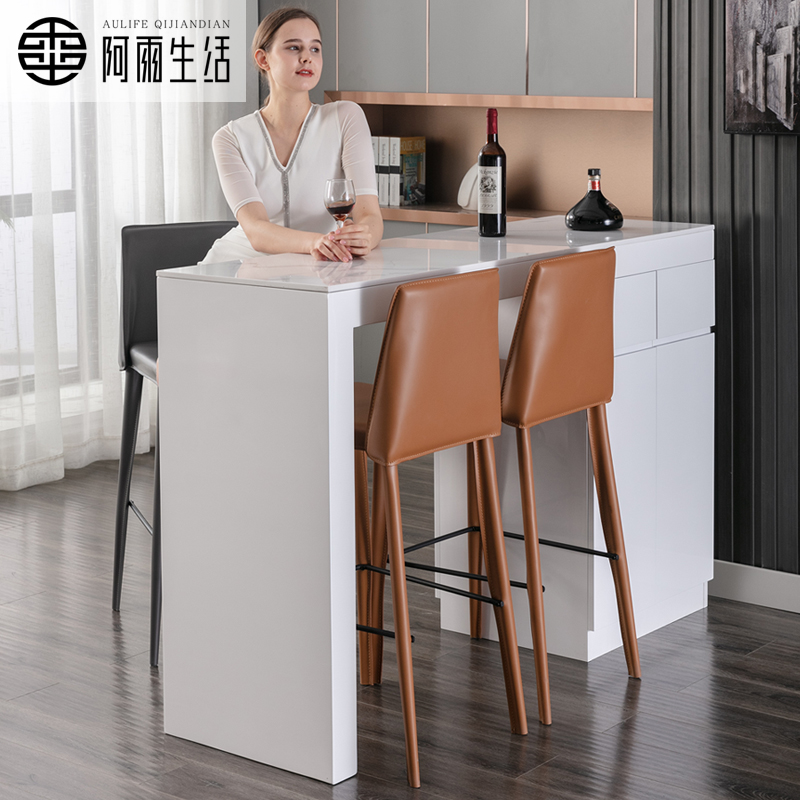 Designer Italian minimalist bar chair Saddle leather leather creative bar chair Modern simple household crusty high stool