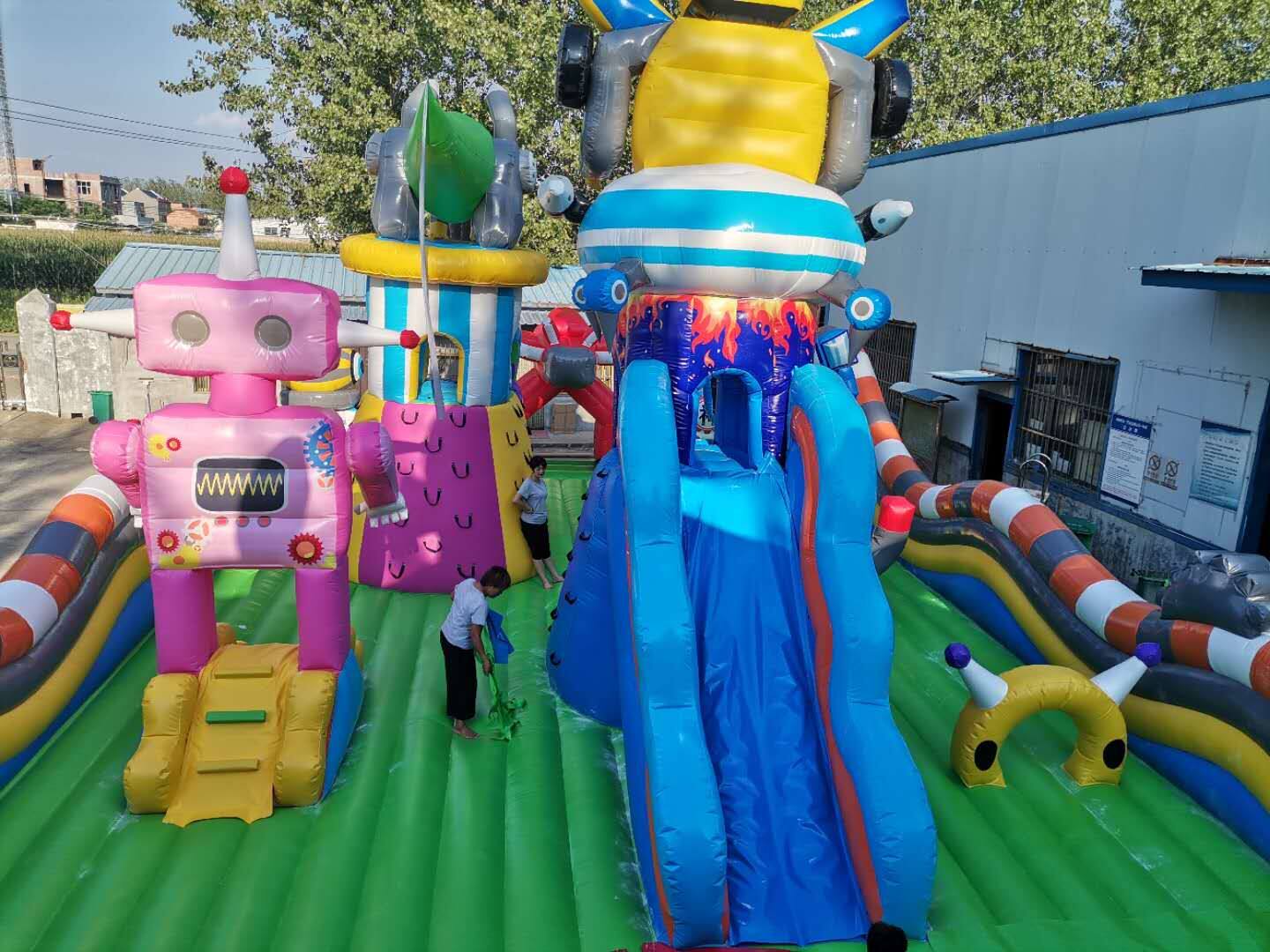 The new pumping machine Ares outdoor large children's trampoline inflatable large slide square amusement park
