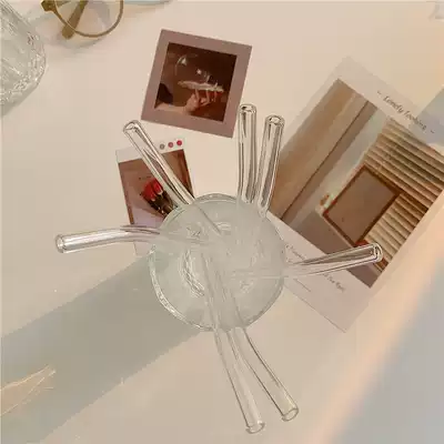 Simple transparent glass straw ins wind elbow straight straw Juice milk straw Stirring stick Simple high temperature resistant