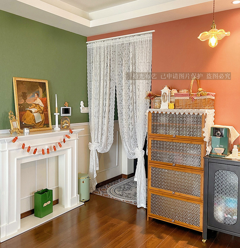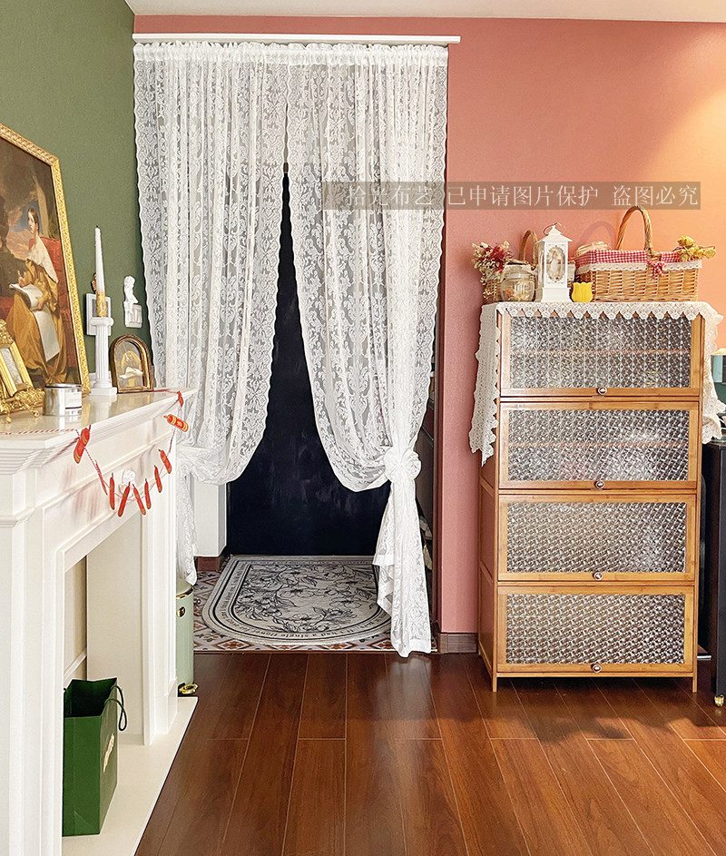 Retro lace door curtain partition hollow white free punching ins style European pastoral bedroom princess gauze curtain customization