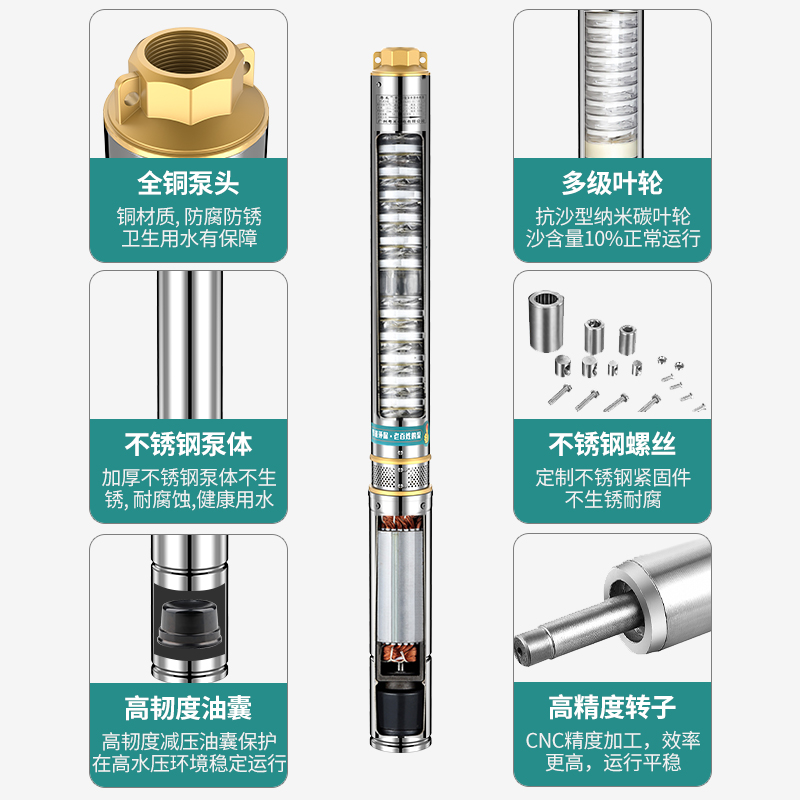 DEEP WELL PUMP STAINLESS STEEL SUBMERSIBLE PUMP HOME WELL WATER HIGH LIFT PUMPING WATER PUMP 220v PUMPS AGRICULTURAL IRRIGATION WATER PUMP