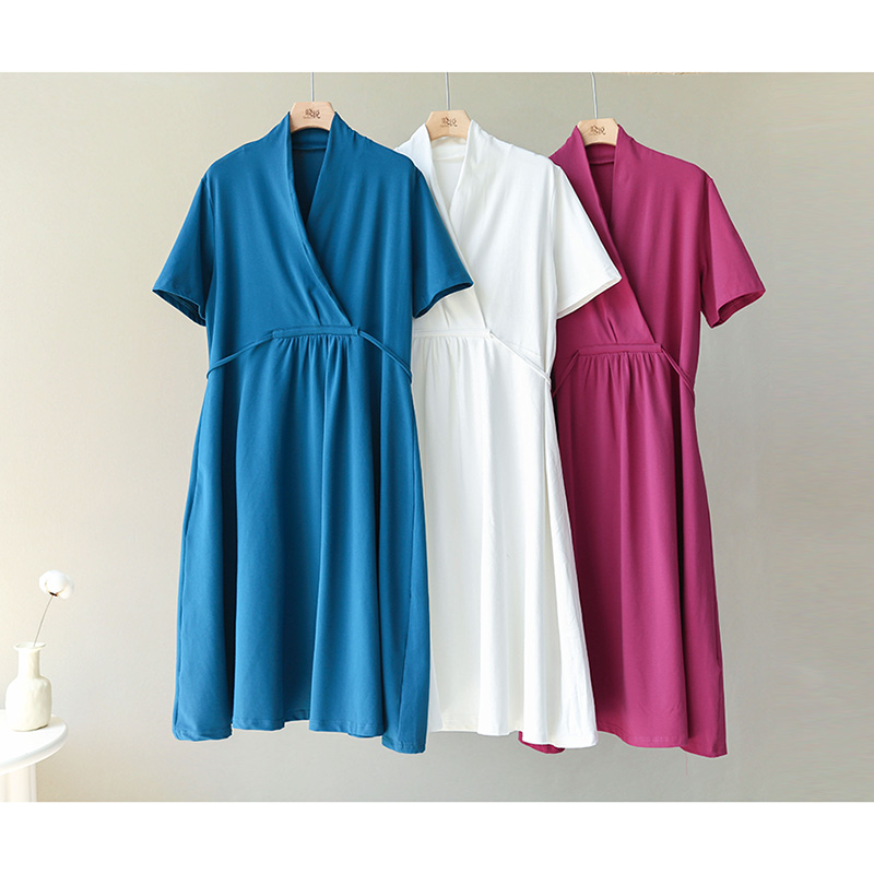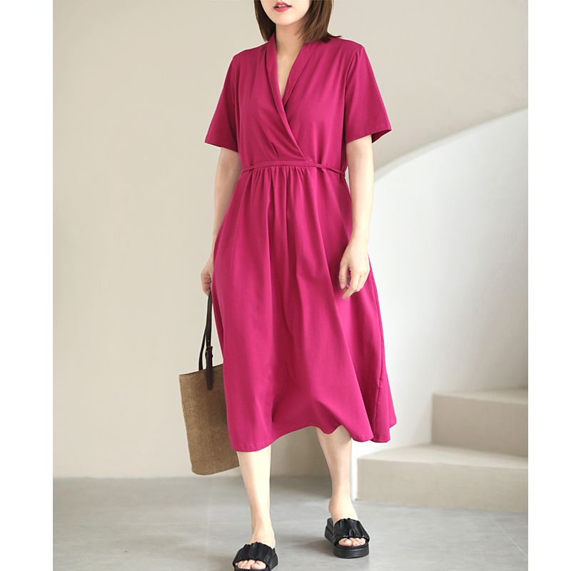 Xiao said elegant temperament design of the flap V - collar pure color and lean cotton long skirt dress dress summer