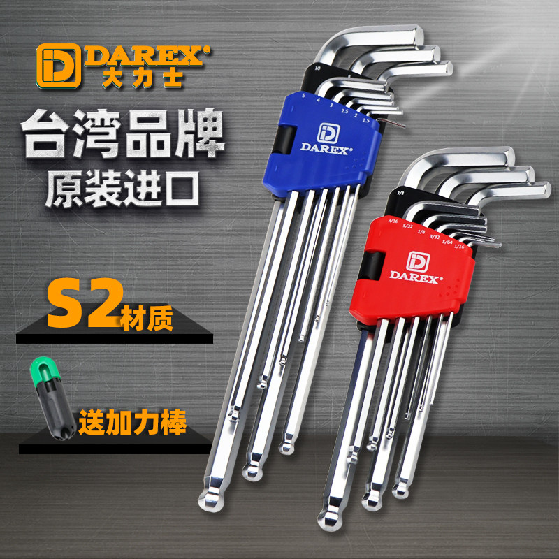 Taiwan imports DAREX inner hexagon wrench suit S2 metric British-made ball head 6 corner lengthened hexagonal key inner hexagon