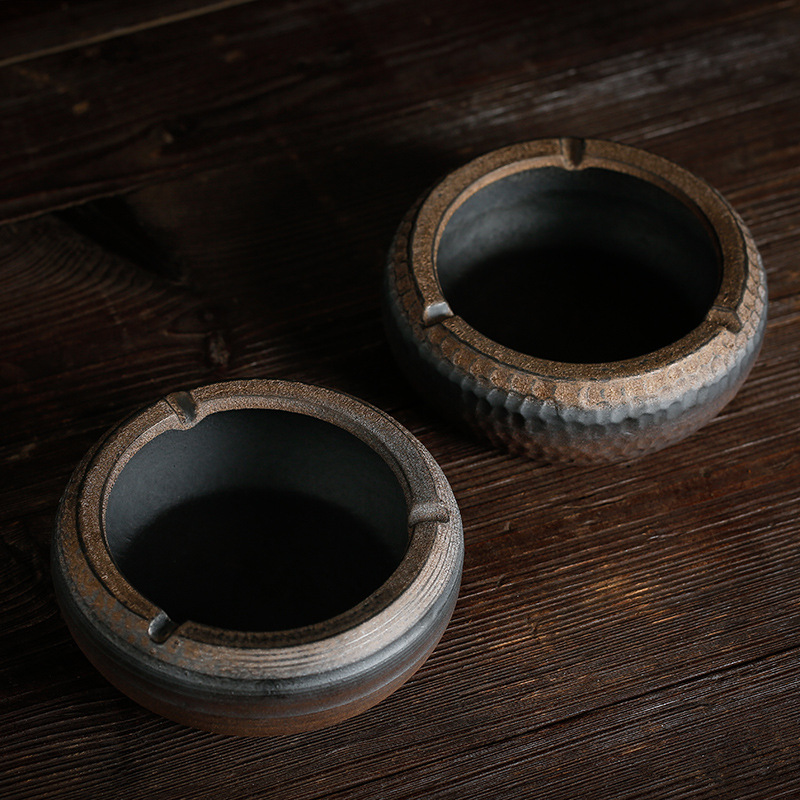 Three-life fireworks Zen Coarse Pottery smoke Ashtray Ancient Early Fever GOLDEN RETRO CHINESE STYLE OFFICE TEA ROOM TEA ROOM ACCESSORIES HEM