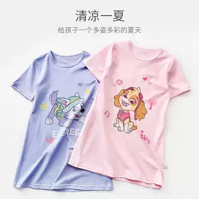 Wangwang Team Girls Nightdress Summer Thin Cotton Women Sleeping Dress Home Dress Cartoon Children Air Conditioning Skirt