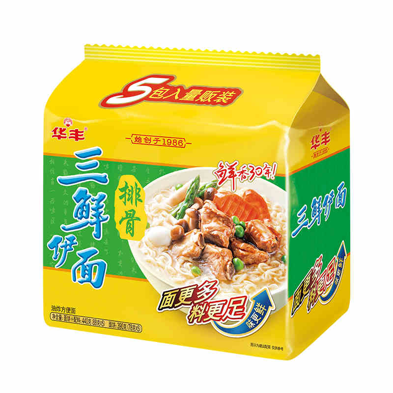 Huafeng Sanfresh Ifacial Chicken Pork Ribs 5 Lianbag Old-fashioned Bubble Noodles with Instant Noodles Eat the Nighttime Snack Foods