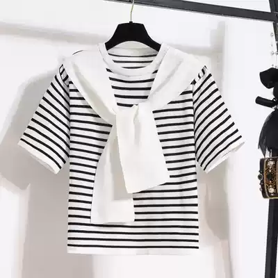 Shawl Striped Top Set 2021 Summer New Women Slim High-waisted Denim Skirt