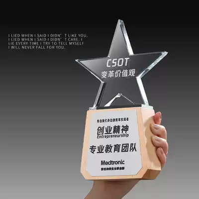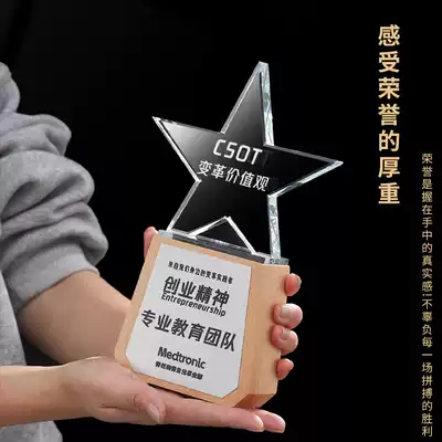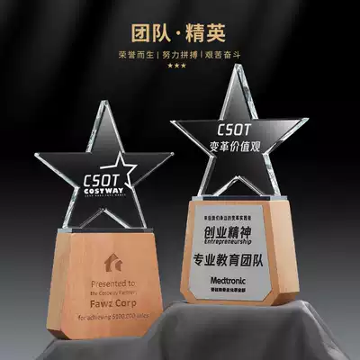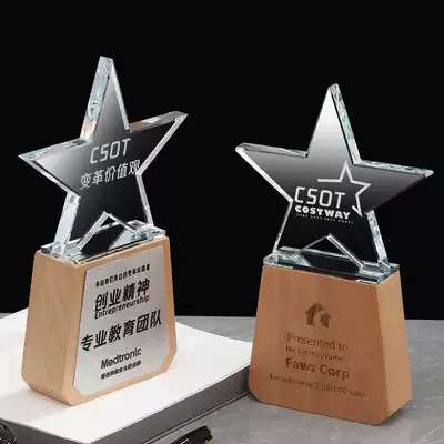 Wood Crystal creative five-pointed star trophy customized wooden annual meeting honorary license team staff award