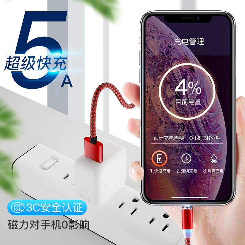 Magnetic Wire Data Wire Strong Magnetic Force Charging Wire Instrumental magnetic magnet suction head mobile phone fast filling suitable for Apple Android type-c charging line three-in-one brisk 20pro mobile phone Xiaomi vivo