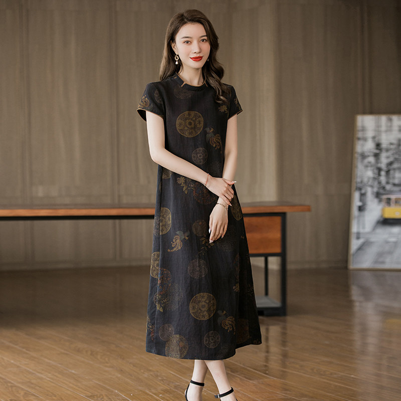 Hangzhou Zhengzong Sang silk dress 2022 Xia new large size floral Luo Xiangyun Cloud yarn Dress Woman with great temperament to be slim