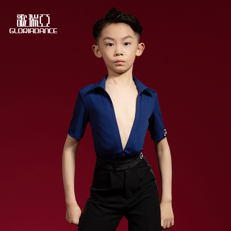 Gloria Latin dance suit boys summer chacha deep V-neck short-sleeved top children's Latin practice suit male G5029