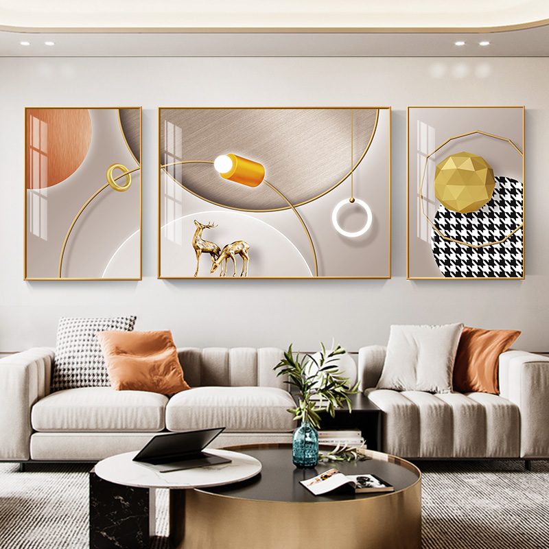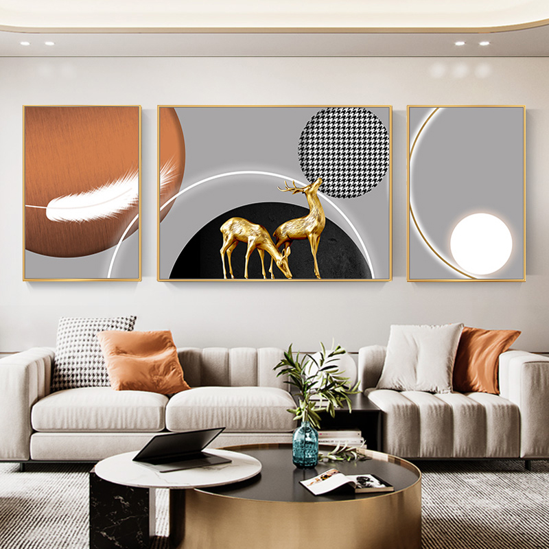Living room decorative painting sofa background wall hanging painting modern simple atmosphere villa sofa behind triple luxury mural