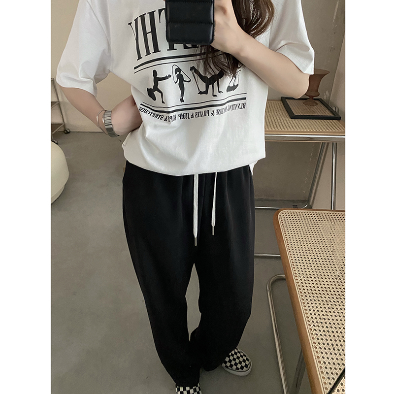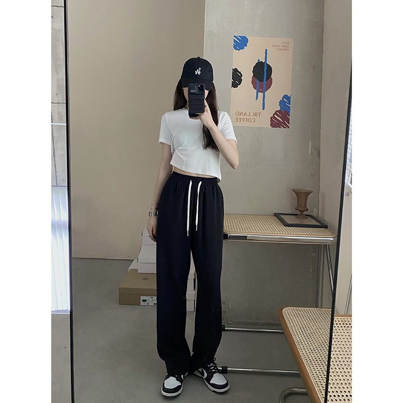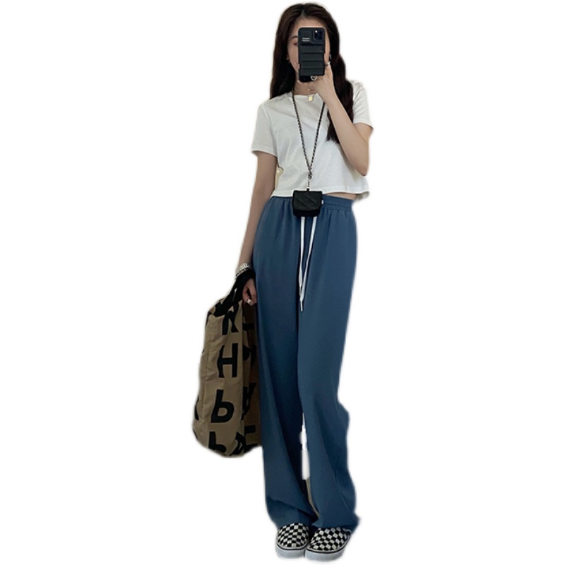 HHYEEE blue wide-leg pants women's summer thin section 2021 new mopping straight tube thin loose casual sports pants