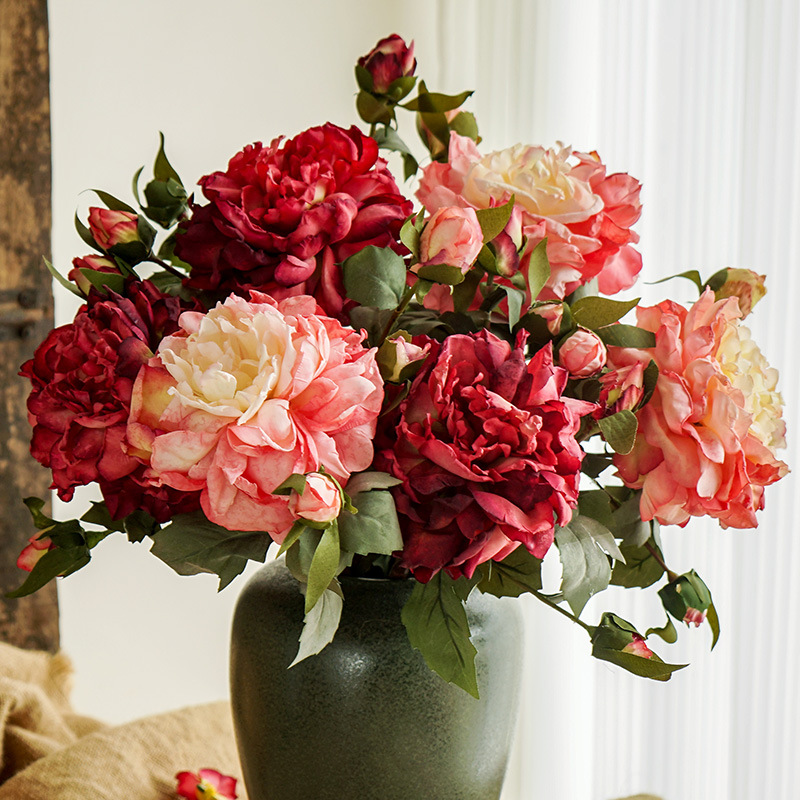 In the wild French coke edge peony flower simulation bouquet living room table decoration fake flower decoration flower arrangement fake flower decoration
