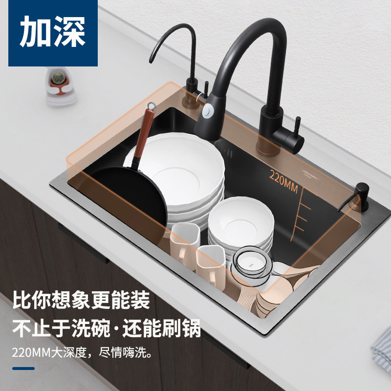 Good Color Naughty Kitchen Wash Basin Nano Single Sink 304 Stainless Steel Table Up And Down Dish Wash Vegetable Pool Black Sink