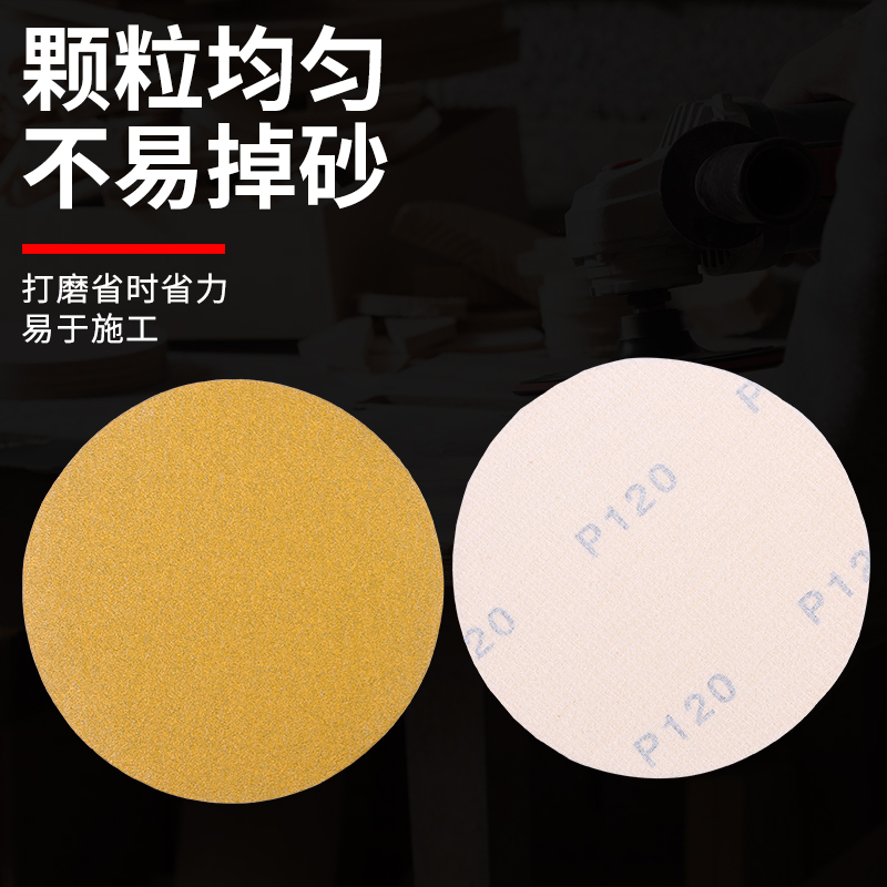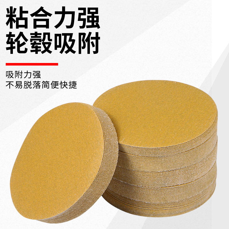 5 inch non-porous round dry grinding yellow sandpaper car Wall furniture back self-adhesive flocking polishing polished sandpaper sheet