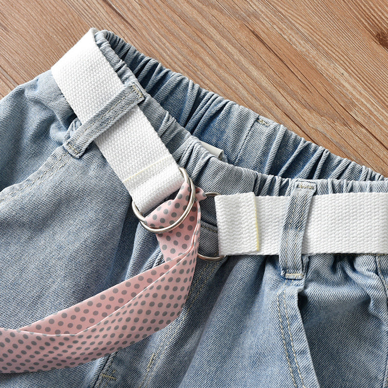 Girls with a wide leg seven - point jeans summer thin 2022 new girls girls in summer loose pants