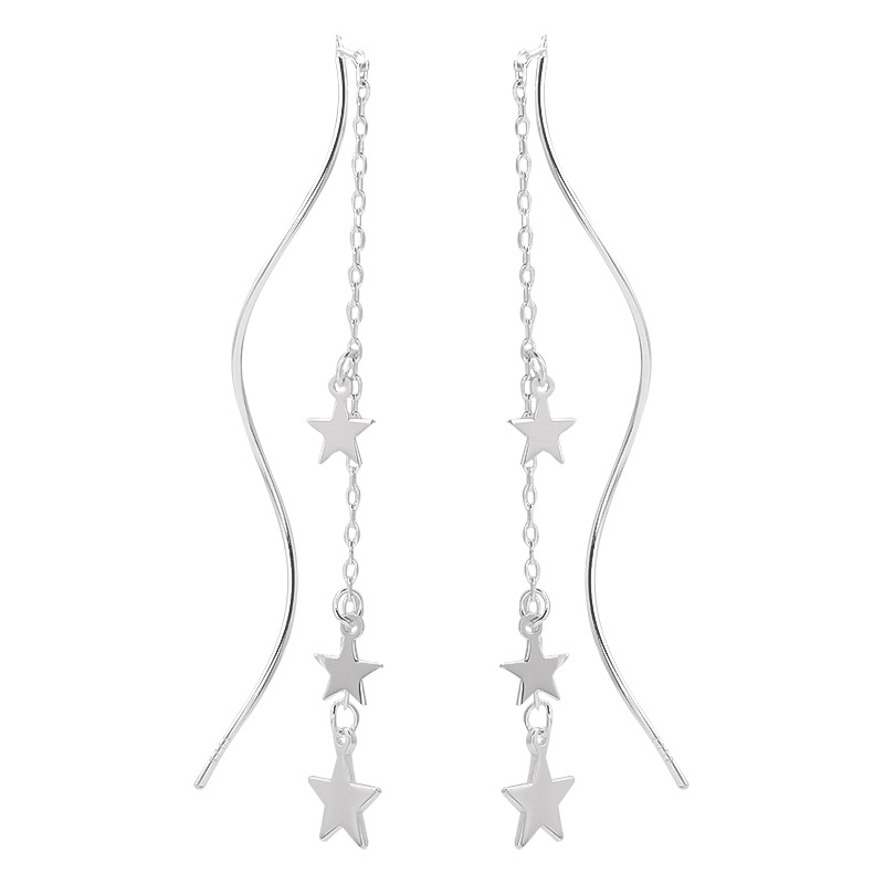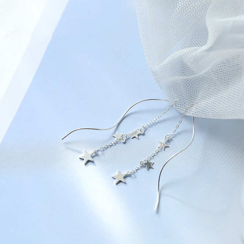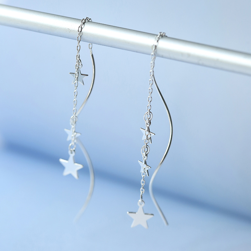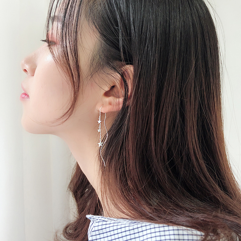 Sterling Silver Star Earrings Temperament Simple Long Tassel Pentagonal Star Earrings Korean Face Thin Net Red Personality Earrings