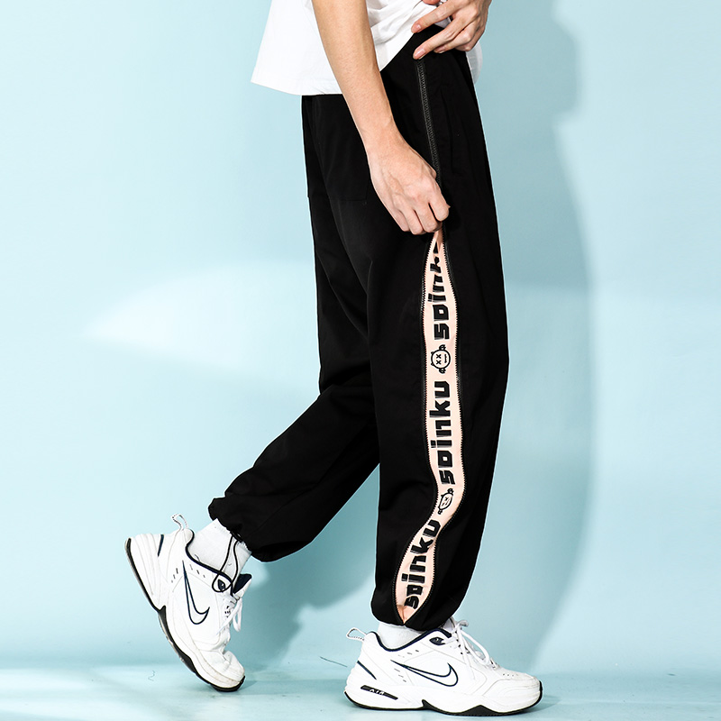 Flammable new side zipper sports thick cotton pants men's tide brand hip-hop summer loose straight leggings casual pants