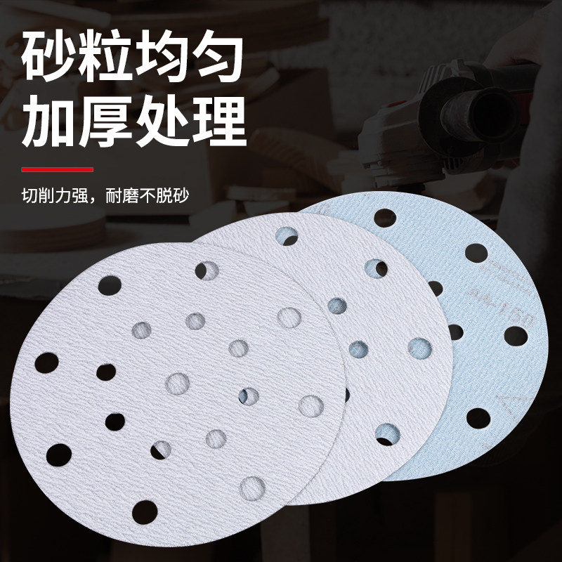 6 inch 17-hole white sandpaper dry sandpaper car paint surface polishing air mill grinding back velvet self-adhesive round sandpaper