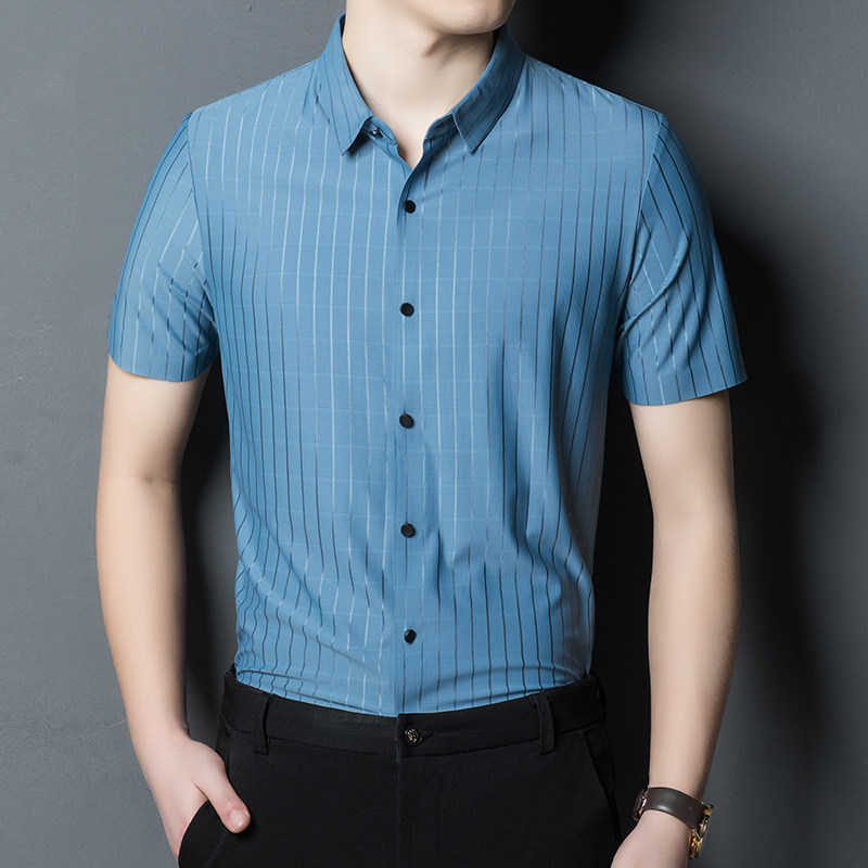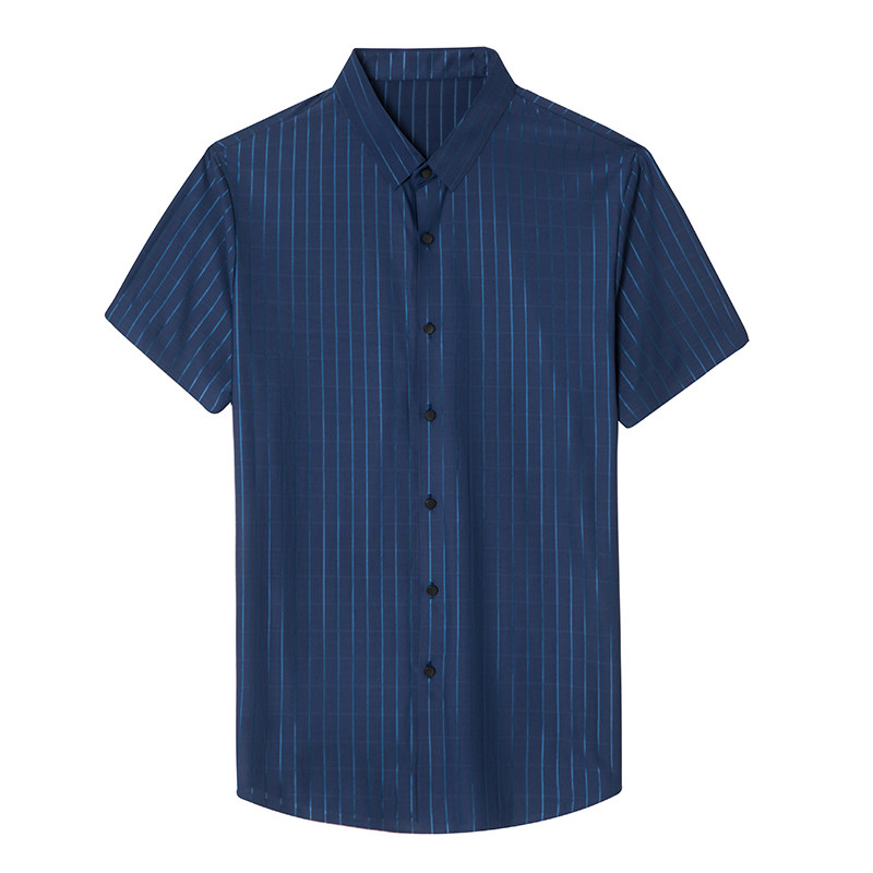 Big Cards Short Sleeves Shirts Men's Summer High-end Ice Sensation of Old Age Stripes Free of Ironing Business Casual Men Half Sleeve Shirt