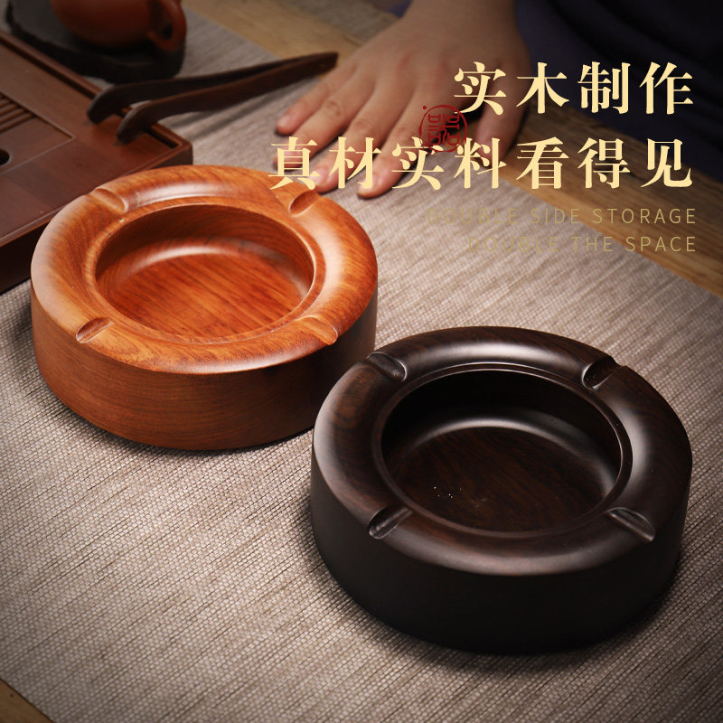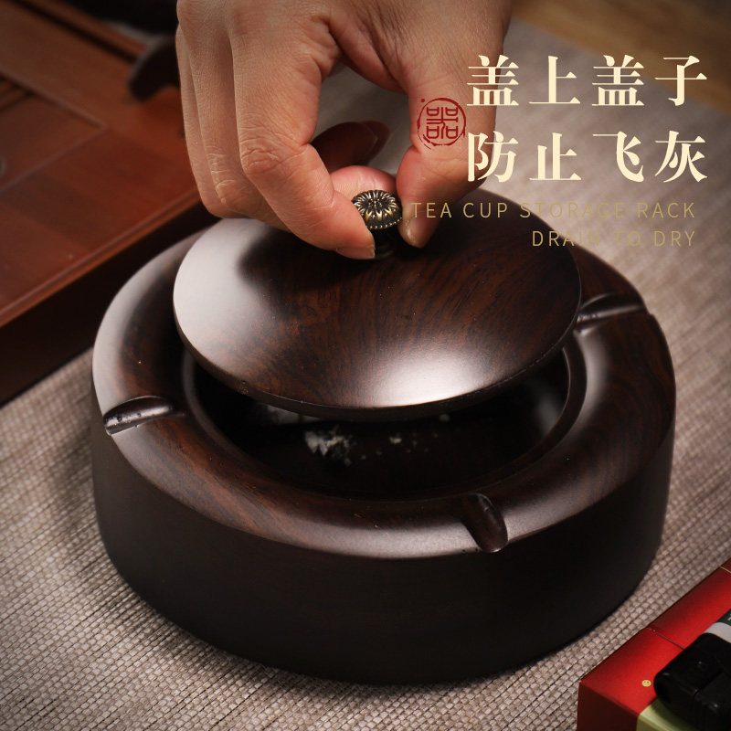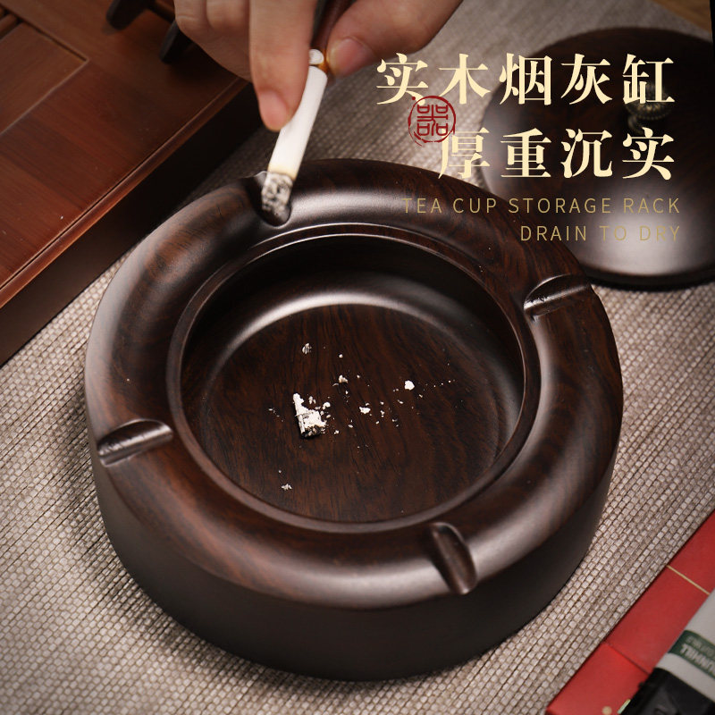 Daoshan ashtray creative living room for Chinese personality retro-wood trend flow cylinder with anti-fly ash