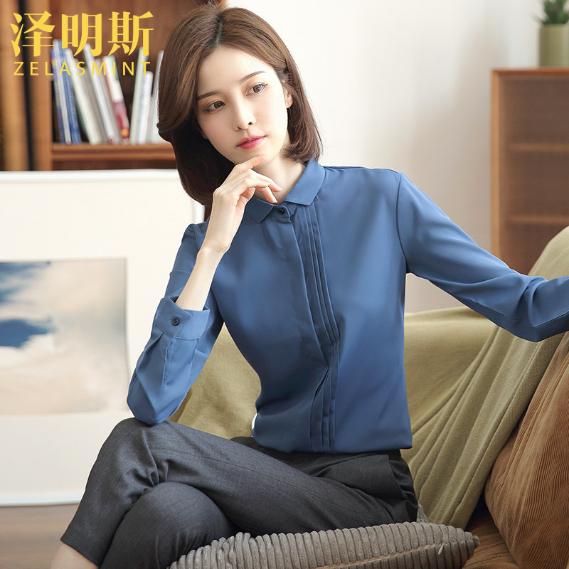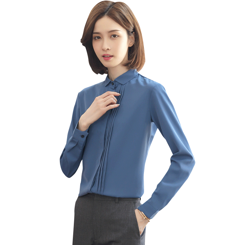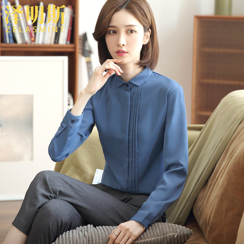 Blue chiffon shirt women's long-sleeved summer thin overalls 2022 new design sense niche top fashion shirt