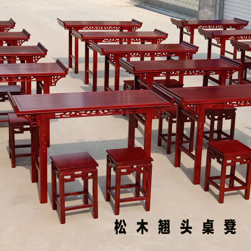 Pine 100*40*80 One table one stool Pine 120*40*80 One table 2 square stools Pine 120*50*80 One table 2 square stools Pine 120*60*8