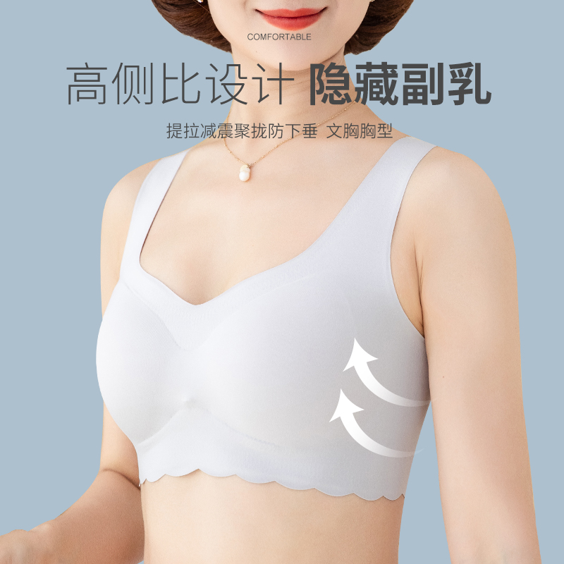 Mom lingerie vest-style female large breasted small text bra middle-aged and older summer thin steel ring without steel ring to gather without marks