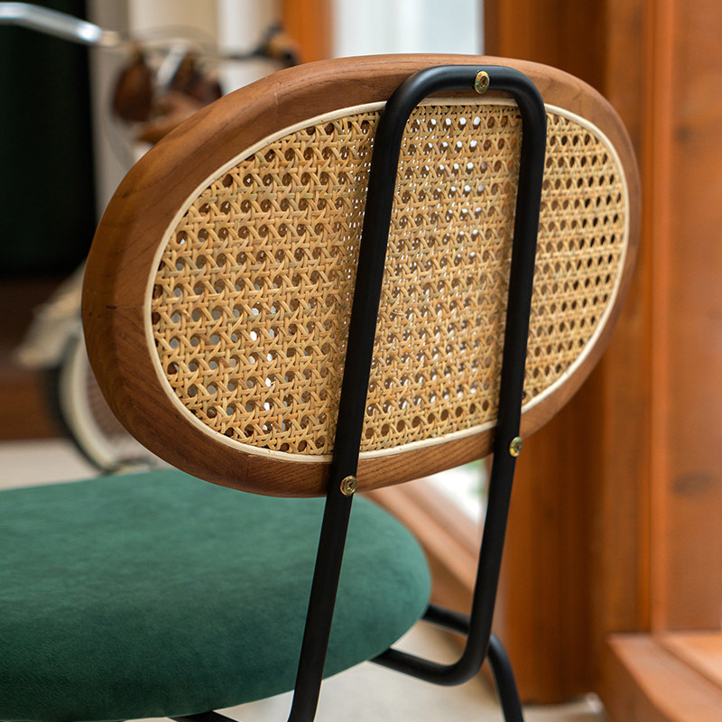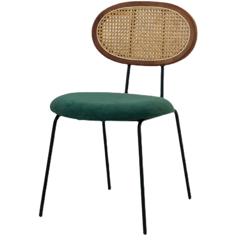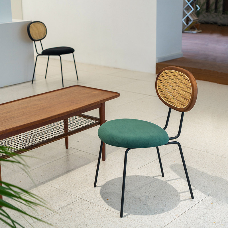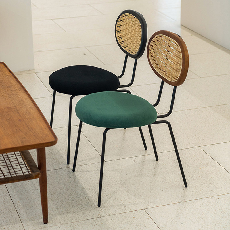 Nordic rattan leisure dining chair modern minimalist fabric chair creative milk tea shop net red iron frame back stool ins