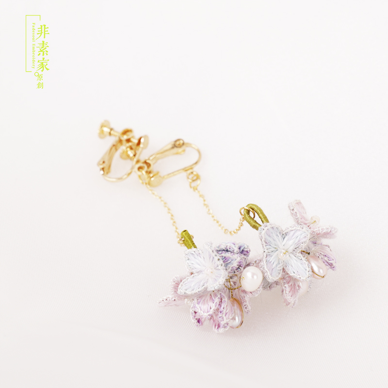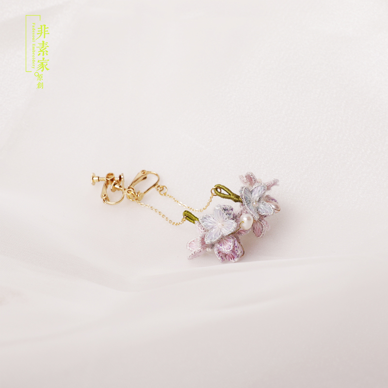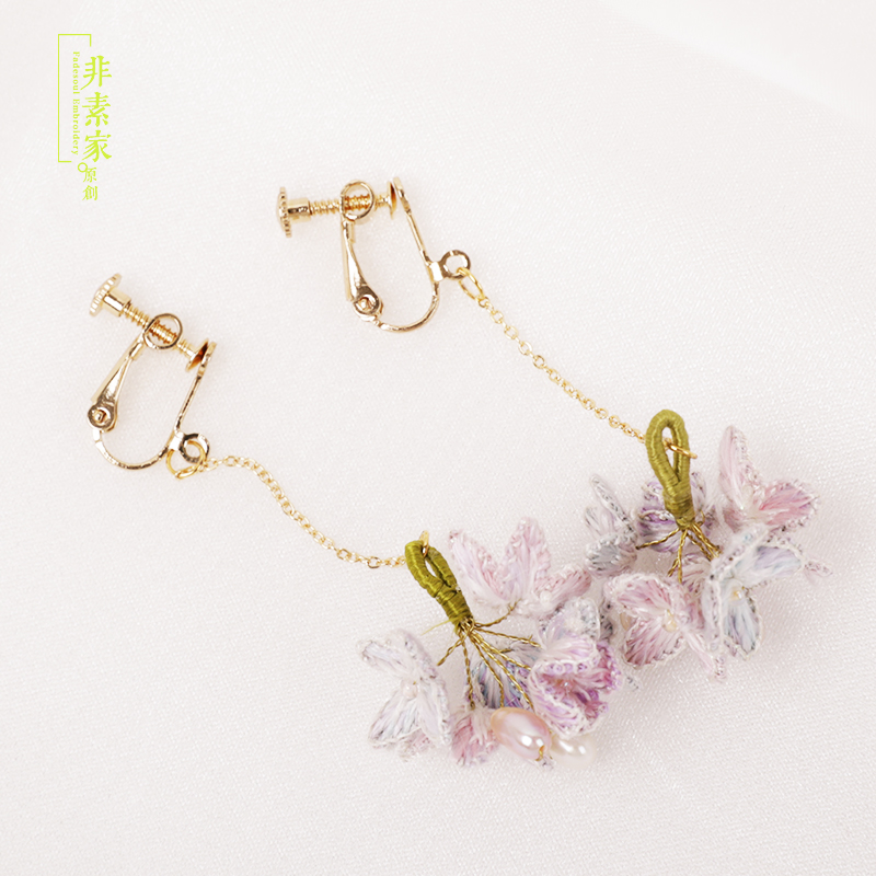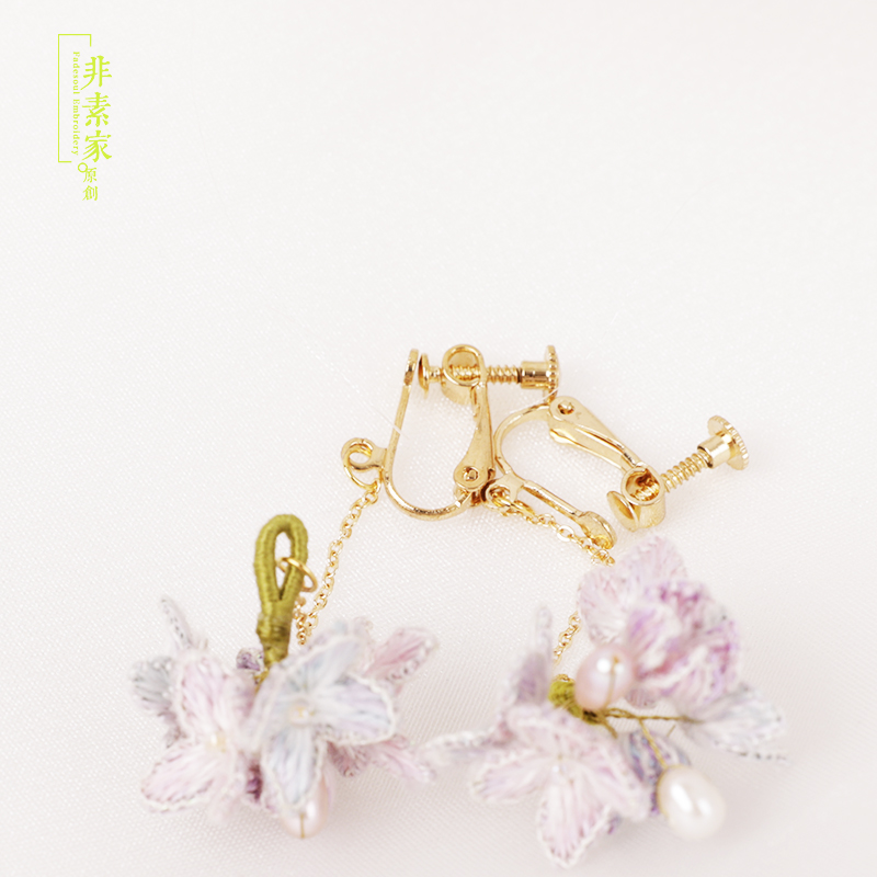 < On Earth > Su Embroidery Diy Girl Hearts Ear Pin Earrings Small Fresh Flowers Earrings Schoolgirl Embroidered Earrings