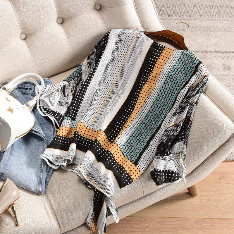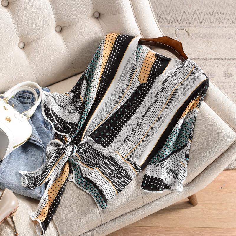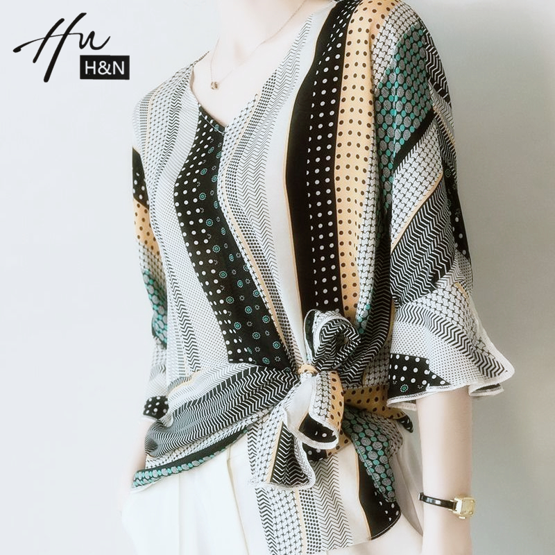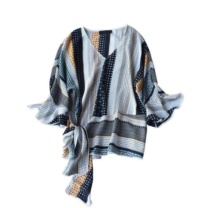 Retro shirt woman 2021 Summer new V collar 70% sleeves Striped Striped blouse Women's design Sensation Niche
