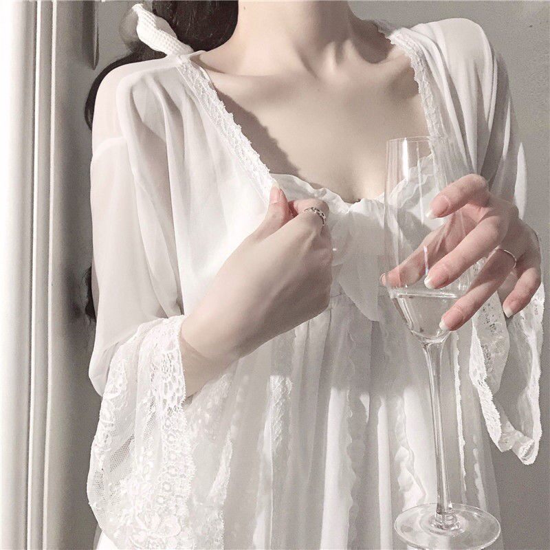 Palace style lace lace lace lace lace lace sleepy dress hanging two pieces of retro princess wind gauge thin sleepy dress home suit
