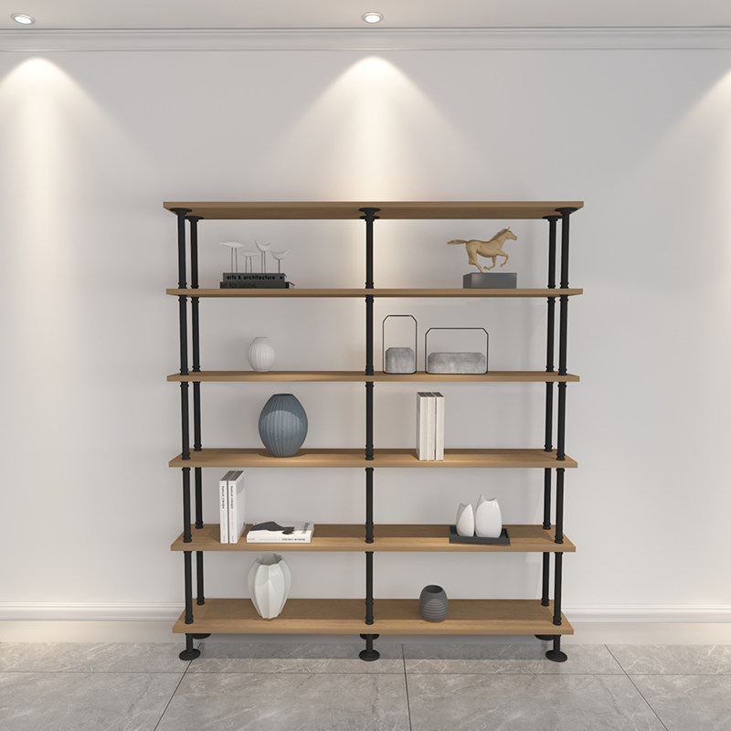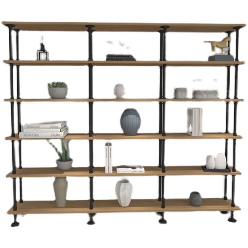 Wrought iron bookshelf floor-to-ceiling solid wood industrial wind rack whole wall display shelf partition LOFT sandwich multi-layer shelf